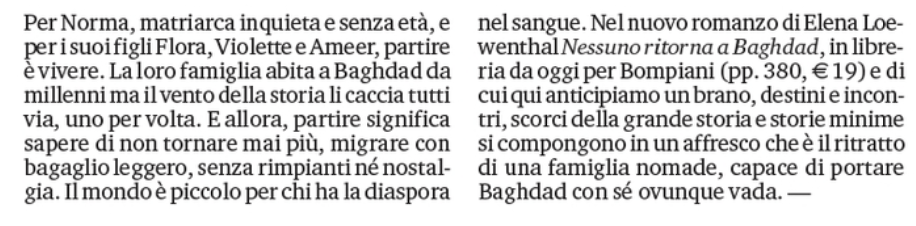 Elena Loewenthal “Nessuno ritorna a Baghdad” da La Stampa