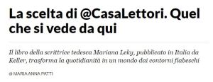 Mariana Leky “Quel che si vede da qui” recensione di Maria Anna Patti da Robinson La Repubblica