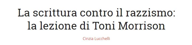 Da Consigli.it: presentazione di alcuni romanzi di Toni Morrison a cura di Cinzia Lucchelli 7 settembre 2019tuttatoscana continua a leggere la presentazione ad alcuni romanzi di Toni Morrison e anche da Mangialibri, le pagine dedicate e le recensioni Condividi: Fai clic per condividere su X (Si apre in una nuova finestra) X Fai clic qui per condividere su LinkedIn (Si apre in una nuova finestra) LinkedIn Fai clic per condividere su Facebook (Si apre in una nuova finestra) Facebook Fai clic qui per condividere su Pinterest (Si apre in una nuova finestra) Pinterest Fai clic qui per condividere su Tumblr (Si apre in una nuova finestra) Tumblr Correlati