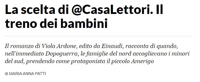 Viola Ardone “Il treno dei bambini” recensione di Maria Anna Patti su Robinson La Repubblica