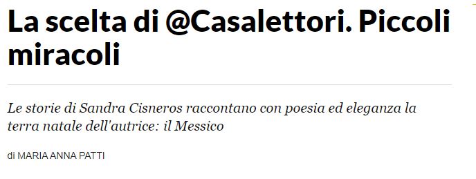 Sandra Cisneros “Piccoli miracoli” recensione di Maria Anna Patti da Robinson La Repubblica