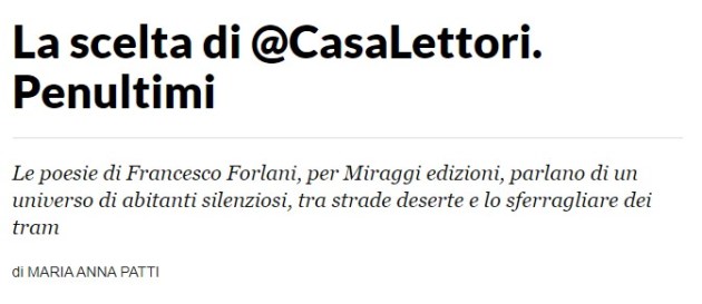 Francesco Forlani “Penultimi” recensione di Maria Anna Patti CasaLettori su Robinson La Repubblica