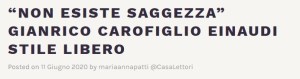 Un profilo delicato, una figura tratteggiata con tinte tenui proprio perché nel suo racconto si percorrono ricordi, sfumati dalla distanza e dal distacco, affetti, dolori, incontri, lavoro duro e una filosofia della vita che colpisce nella sua serena semplicità.