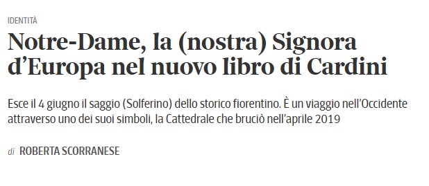 A un anno dal rogo che ha distrutto la Cattedrale e commosso il mondo, Franco Cardini ne fa la protagonista del suo nuovo libro: un’interprete solo apparentemente senza voce della storia d’Europa che ha assistito a molti grandi eventi nel corso dei secoli e può quindi raccontarci il Vecchio continente dal Medioevo a oggi.