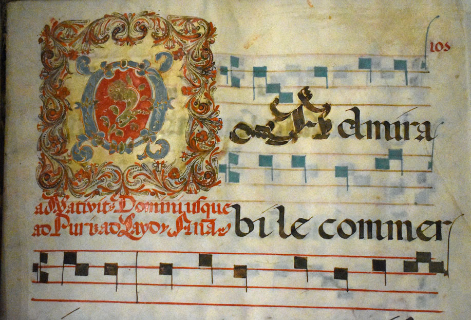 Servivano nelle cattedrali e nei monasteri per l’officiatura del coro. Erano scritti prevalentemente con caratteri gotici, su grandi fogli di pergamena, e contenevano le parti cantate e la relativa notazione musicale ed erano di grandi dimensioni perché collocati al centro del coro, su alti leggii, potevano essere letti dai monaci riuniti in gruppo. Il salterio era relativo ai canti biblici, il processionale, come indica il termine, ai canti da processione.