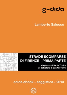 Lamberto Salucco ha il pallino delle strade scomparse, e lo fa rotolare in mezzo a vicoli, chiassi, piazze, piazzette, vie e viuzze fantasma rincorrendolo per raggiungerlo, e così facendo scopre un mondo incantato che gli altri non vedono: è un mago? No, è un grande innamorato di Firenze, e come ogni innamorato vuole conoscere a fondo il passato della sua amata. Ma si sa, sapere troppo può far male, e sicuramente Lamberto ha sofferto molto nella sua ricerca, perché Firenze ha parecchi scheletri nello stradario. Scoprire che dove adesso ci sono edifici c’era una piazza, che tante strade sono state abolite, tante case abbattute, chiese, torri, loggiati spianati, perduti, dimenticati (e tutti facevano parte di strade non più esistenti) provoca un dolore acuto al cuore.Per non parlare dei nomi. E m’immagino il Salucco intento a chiedere geloso alla sua amata: “Come si chiamavano i tuoi ex? Avanti, dimmelo!”. Firenze ha risposto, e le risposte sono tutte in quest’opera preziosa e unica, in cui senza inutili sbavature retoriche si può accedere ai dati essenziali della città invisibile, che torna visitabile attraverso chiarissime informazioni corredate da utili e accurate piantine che ci aiutano a orientarci nel nulla.