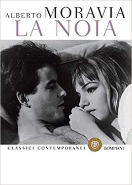 Il romanzo La noia, pubblicato nel 1960, è costruito attorno ad uno dei punti forti della scrittura di Moravia: l’analisi psicologica di persone sgradevoli. Il protagonista, che parla in prima persona, è Dino, un pittore, che fin da subito si segnala per il carattere indisponente e altero. Racconta infatti che ogni cosa, dopo un po’, finisce per procurargli una noia senza rimedio. Non è semplice mancanza di divertimento: si tratta invece di una condizione esistenziale di distacco dalla realtà, in cui le cose gli appaiono, dice, come fiori che passano in pochi secondi dallo sboccio all’appassimento e alla polvere.Ritiene che la causa prima della sua noia sia la ricchezza della famiglia, e ha parole di disprezzo per la madre; però, non rinuncia allo stipendietto mensile che lei gli passa. La pittura, il mestiere in cui aveva cercato una via di fuga, non ha mai reso molto; oltretutto, ha ormai smesso di dipingere, sopraffatto dall’assurda incapacità della realtà di dimostrargli la propria effettiva esistenza.